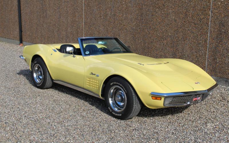 Chevrolet Corvette Big Blok V8 454 7,4 l Automatgear Farve gul, nymalet frontklap og klap ved kaleche Fin sort Kaleche Sort interiør Servostyring Servo bremser Pris med syn, afgift betalt og på DK plader SPØRGSMÅL eller FREMVISNING ring tlf. 40198225 Kun åben efter aftale.Årgang